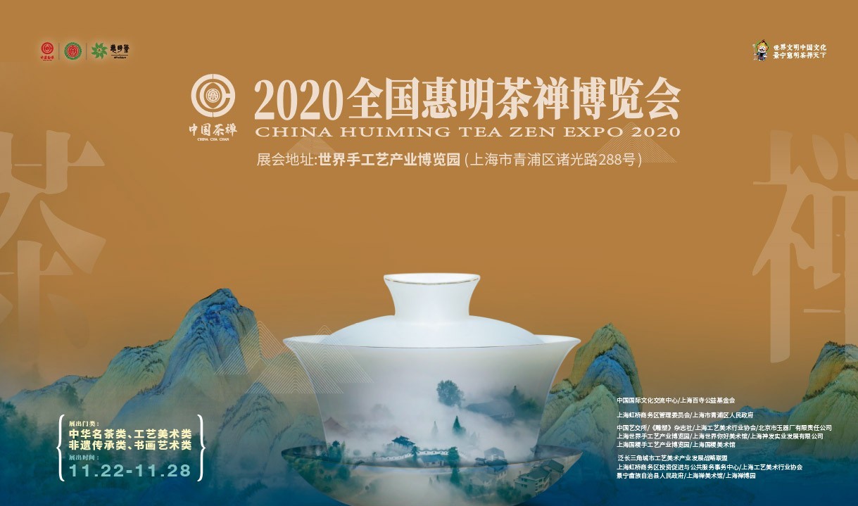 2020全国惠明茶禅博览会由中国国际文化交流中心,上海百寺公益基金会主办,总展览面积3万平方米,包括中华品牌茶、陶瓷、古典家具、书画艺术、工艺美术、非遗传承等六大品类,将展出2万件以上工艺美术作优秀品,以中国传统的茶禅文化和茶禅器具作品汇展,回馈出席第三届中国国际进口博览会的全球嘉宾。